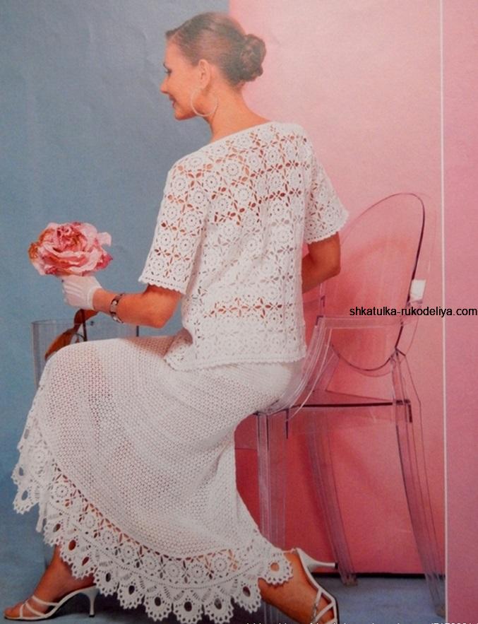Жакет и юбка крючком. Летний костюм крючком для женщин из хлопка схемы описание