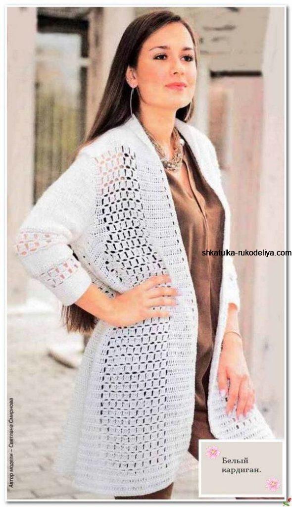 Белый кардиган спицами. Ажурный летний кардиган крючком с описанием