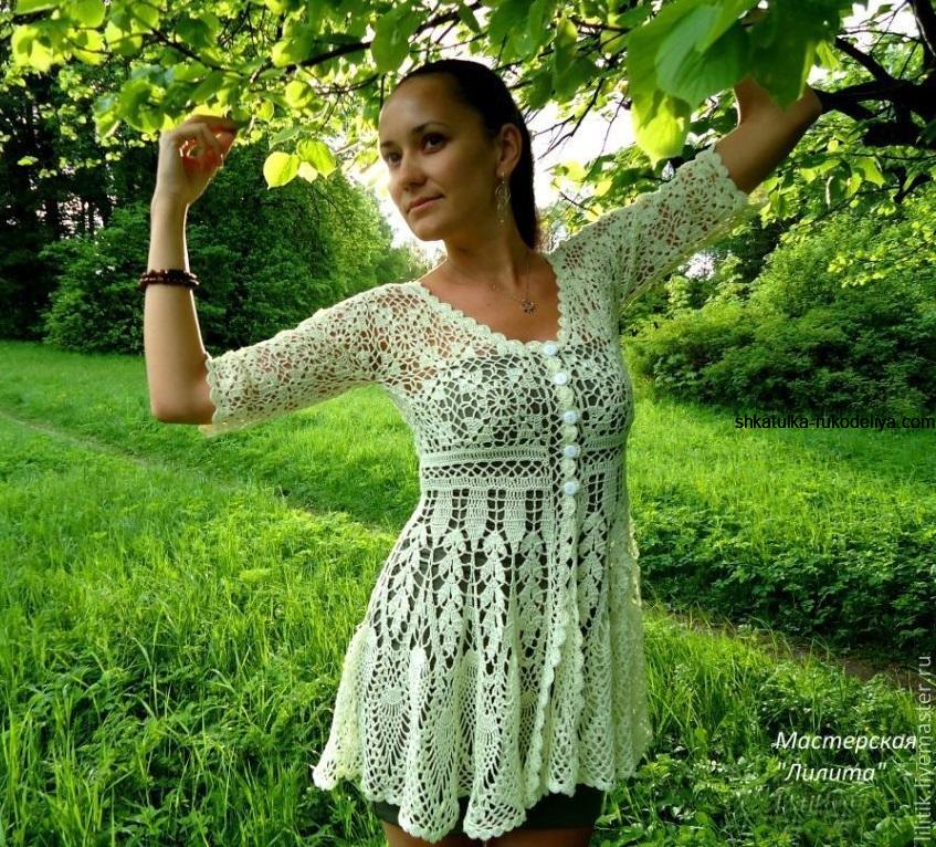 Платье-кардиган с завышенной талией крючком. Кардиган крючком схемы и описание для начинающих