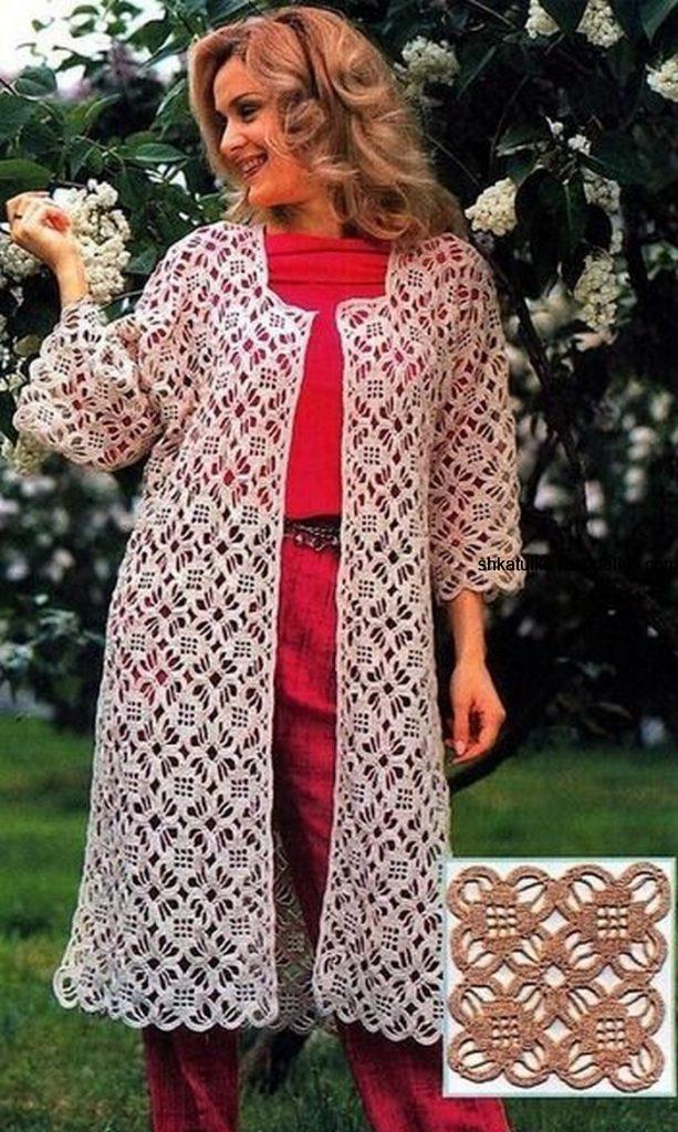 Кружевное летнее пальто крючком. Как связать женское пальто крючком