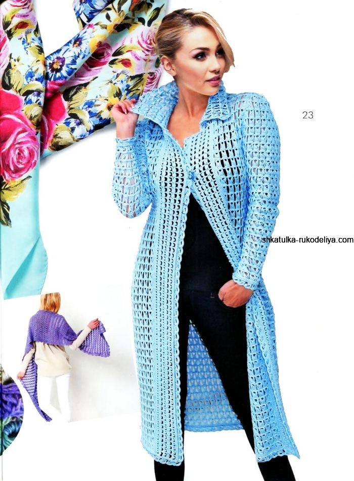 Летнее пальто с узором вертикальные мережки крючком. Схемы вязания крючком пальто для женщин