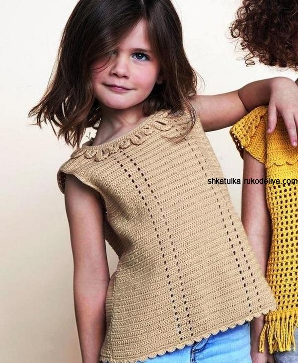 Бежевый топ для девочки крючком. Летний детский топ с описанием и схемами