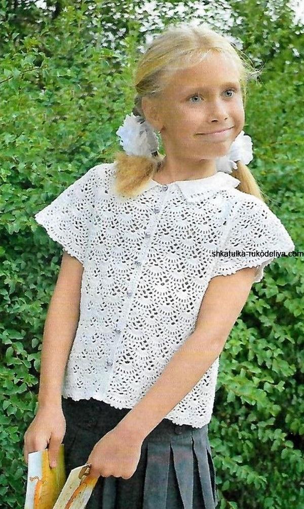 Блуза отличница крючком. Летняя блуза узором веер для девочки 8-9 лет
