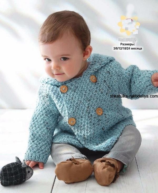Детский жакет с капюшоном спицами. Жакет крупным жемчужным узором с описанием
