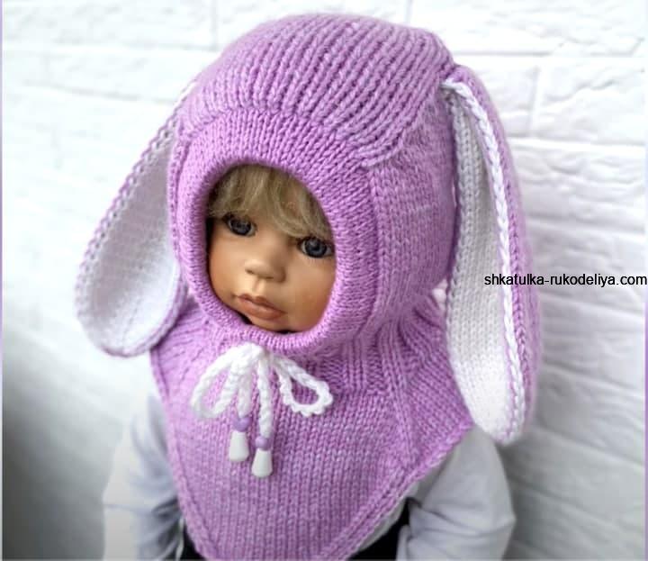 Двойная детская шапка-шлем спицами. Шапка без единого шва подробный мастер класс