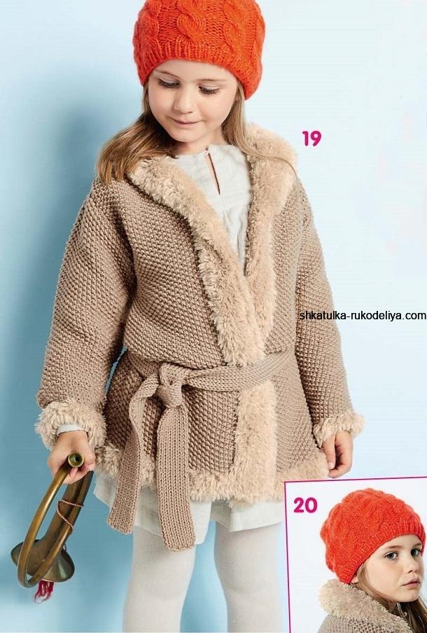 вязание спицами, пальто, схема, описание, детское, для девочки, шапочка, бесплатное описание