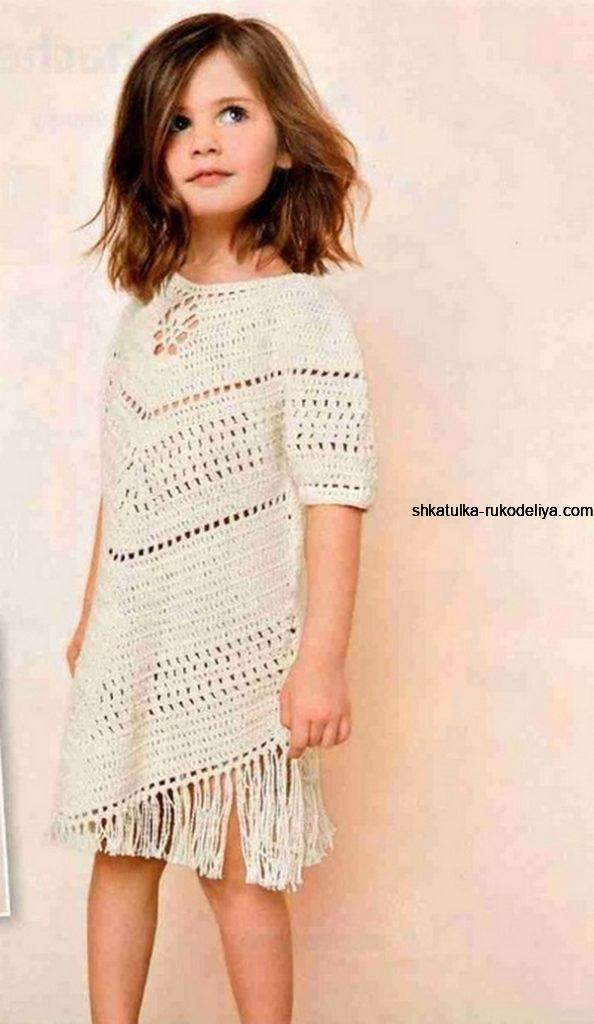 Платье для девочки с бахрамой крючком. Летнее платье крючком для девочки 6-7 лет