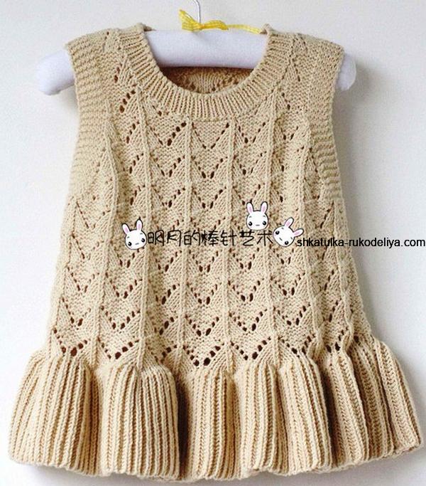 Вязаный сарафан для малышки спицами. Учимся вязать сарафан для девочки спицами по схемам