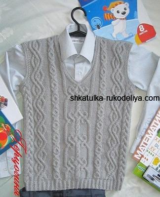 Жилет для мальчика спицами “Школьник”. Незаменимая модель для школьного гардероба мальчику, особенно если в школе приветствуется только деловой стиль одежды .