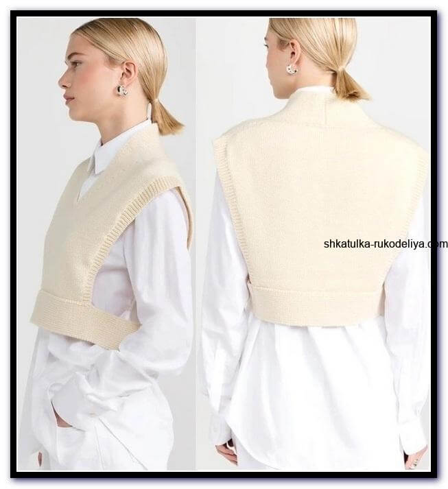 в'язання спицями, жилет, безрукавка, схема, жіноча, коротка, молочного кольору, оверсайз, стильна, модна