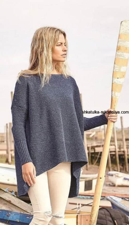 Джемпер оверсайз спицами с удлиненной спинкой. Вязание спицами для женщин модные модели 2021 с описанием