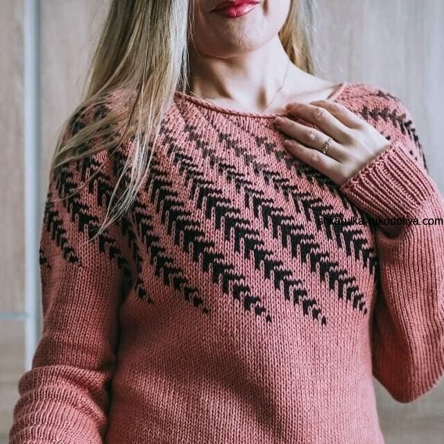 Джемпер с оригинальной кокеткой спицами. Джемпер с круглой кокеткой
