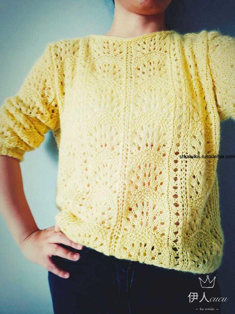 Супер элегантная модель джемпера. Мастер-класс по вязанию спицами джемпера ажурным узором. Схема узора. Выкройка. Элегантный джемпер от SEZANE 2021