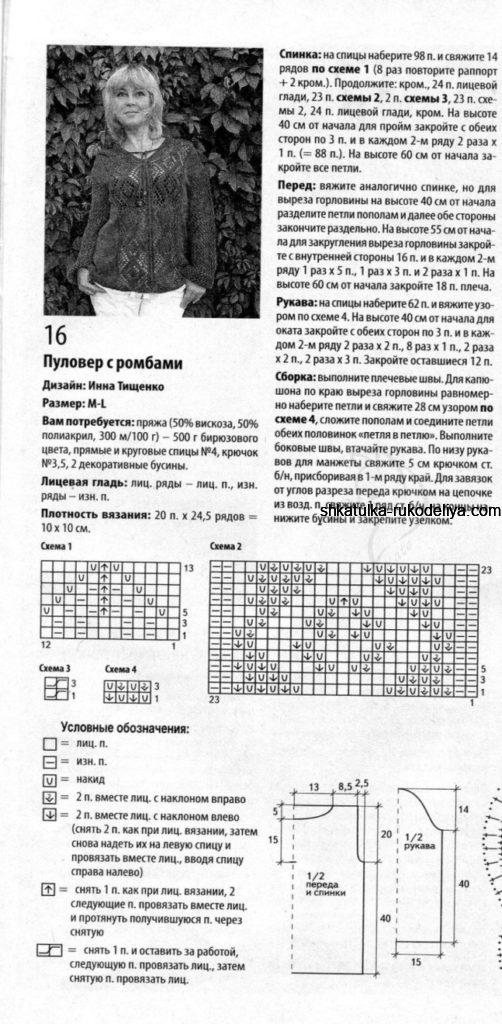 Летний пуловер с ромбами. Как связать женский пуловер с капюшоном схемы
