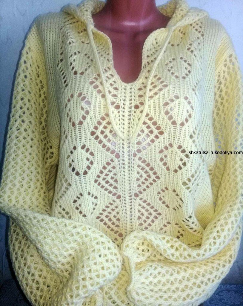 Летний пуловер с ромбами. Как связать женский пуловер с капюшоном схемы