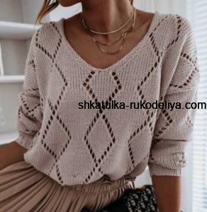 Модный джемпер узором ромб28.06.202028.06.2020 Стильный женский джемпер спицами + мастер класс Previous Post