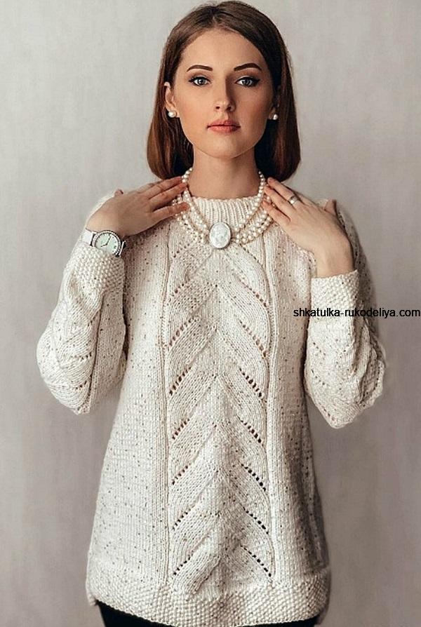 Нежный свитерок красивым узором спицами. Модный женский свитер с описанием спицами. Автор свитера LIKE BABULYA