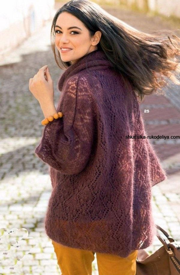 Просторный пуловер спицами. Красивая кофточка с мохера с описанием