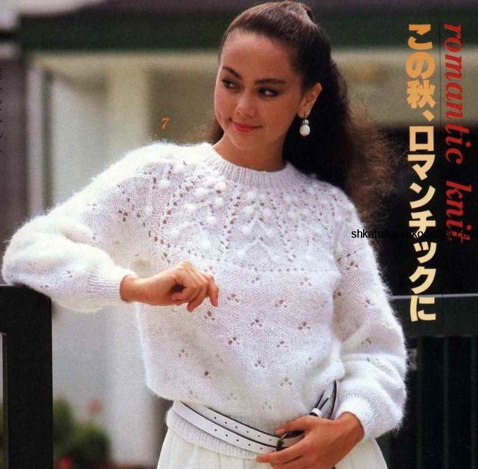 вязание спицами, пуловер, схемы, женский, мохер, круглая кокетка, белый, из журнала
