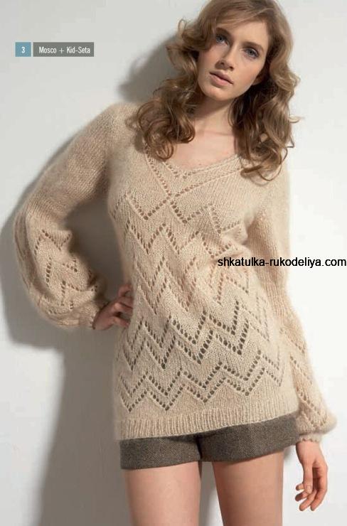 Пуловер мерцание жемчуга спицами. Удлиненный пуловер из мохера спицами