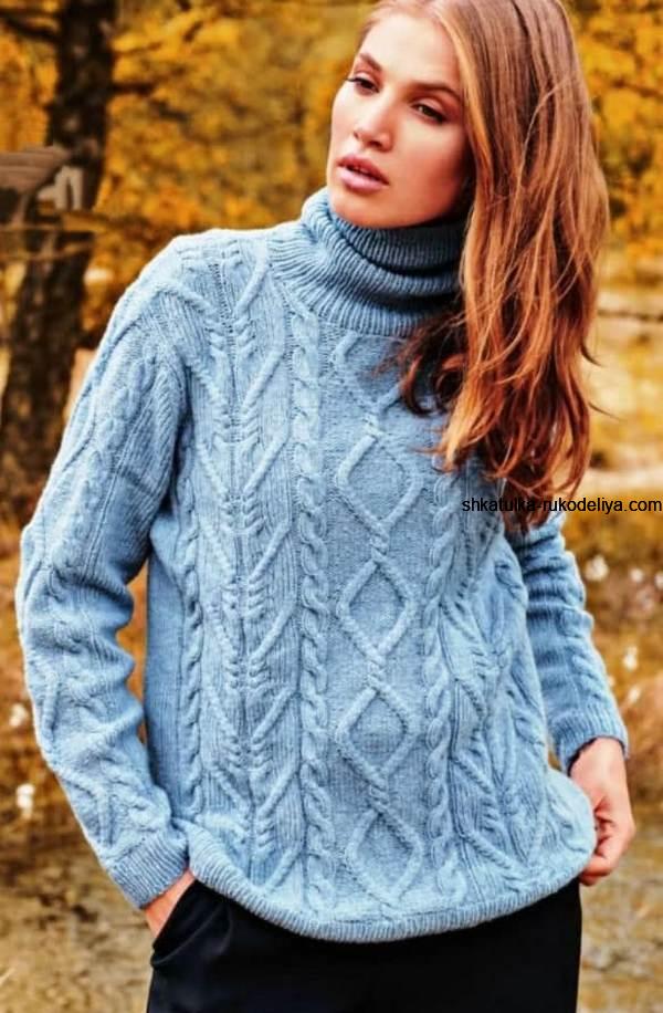 Пуловер с косами и ромбами спицами. Модели вязаных пуловеров