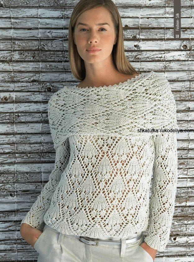 Пуловер с широким воротником спицами. Вязаные пуловеры для женщин спицами с описанием