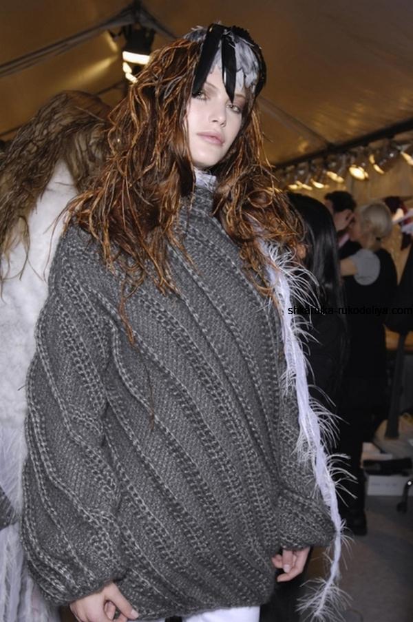 вязание спицами, пуловер, описание, дизайнерский, модный, NINA RICCI, серый, женский