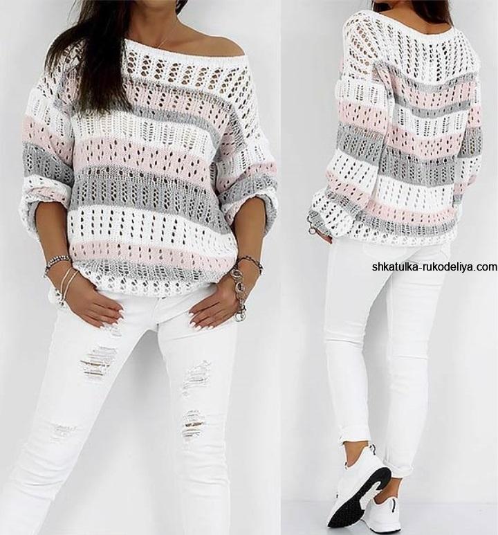 Стильный джемпер спицами. Летний женский джемпер спицами