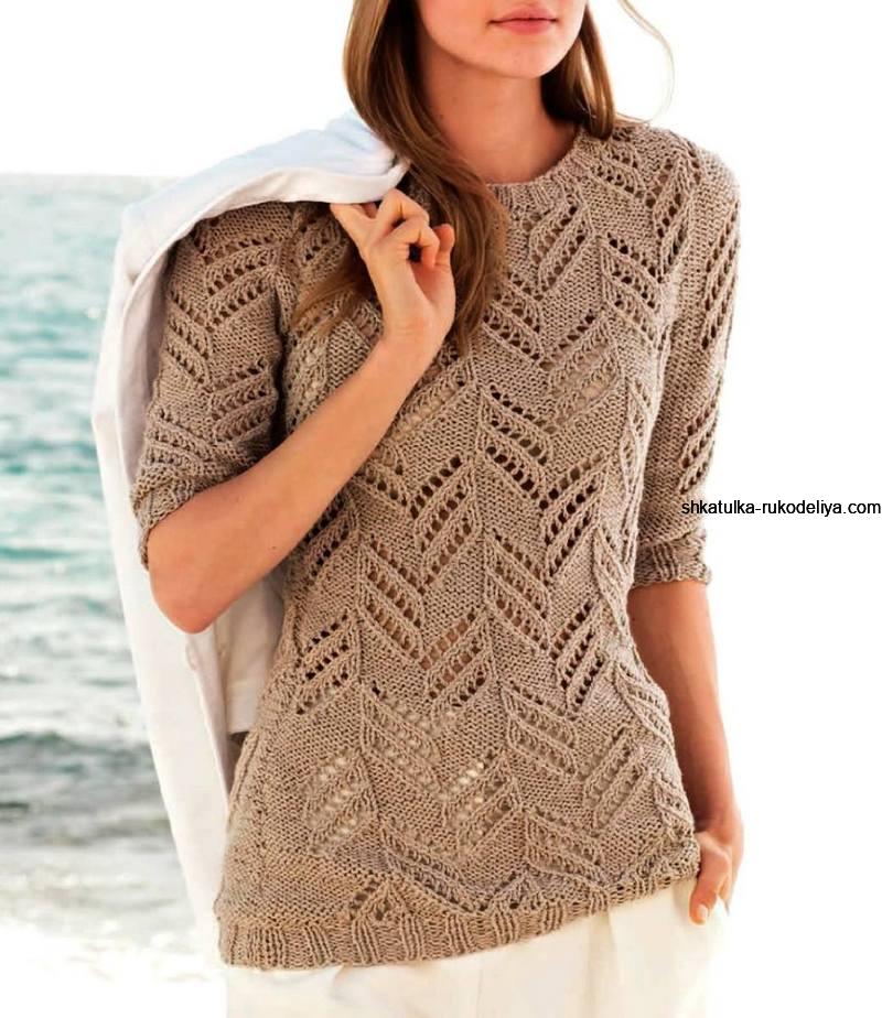 вязание спицами, пуловер, схема, описание, женский, ажурный, короткий рукав