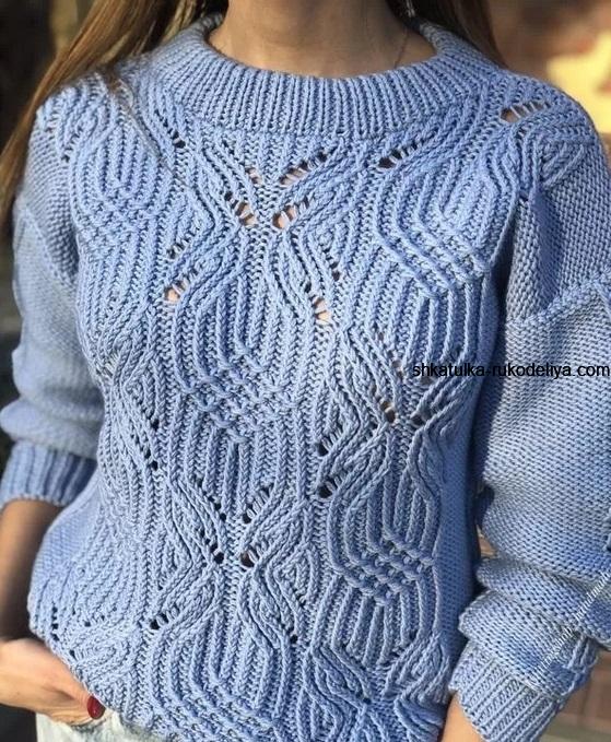Свитер с японским узором бабочки спицами. Новые узоры спицами мастер класс 2021