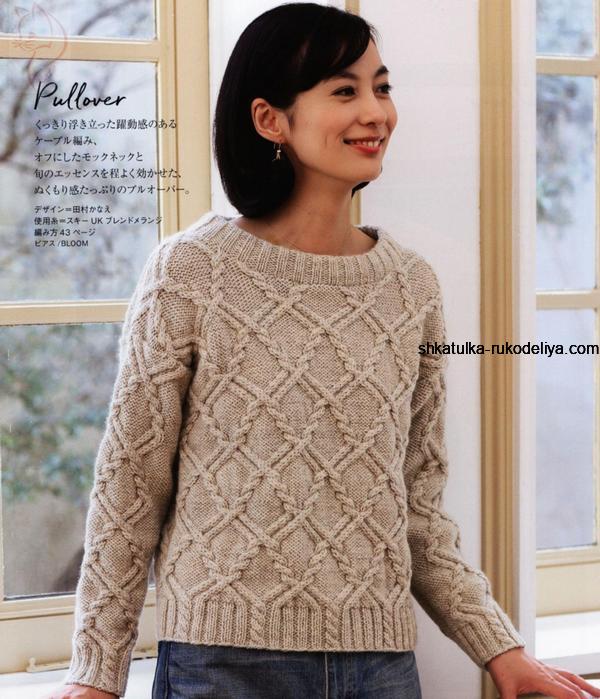 Теплый пуловер с узором из жгутов спицами. Пуловер на весну по японским схемам спицами