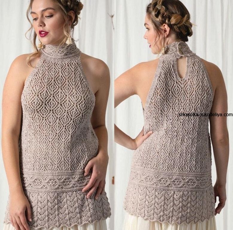 Ажурная вязаная кофточка выглядит нарядно, благодаря своей необычной конструкции.