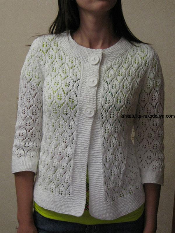Жакет с узором из листьев спицами. Жакет на пуговицах с описанием спицами