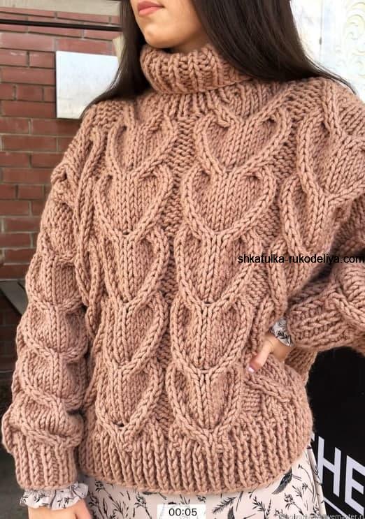 крупной вязки оверсайз. Женский свитер спицами с интересным узором