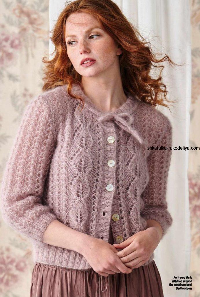 вязание спицами, кардиган, схема, описание, женский, мохер, шелк, молодежный, простой