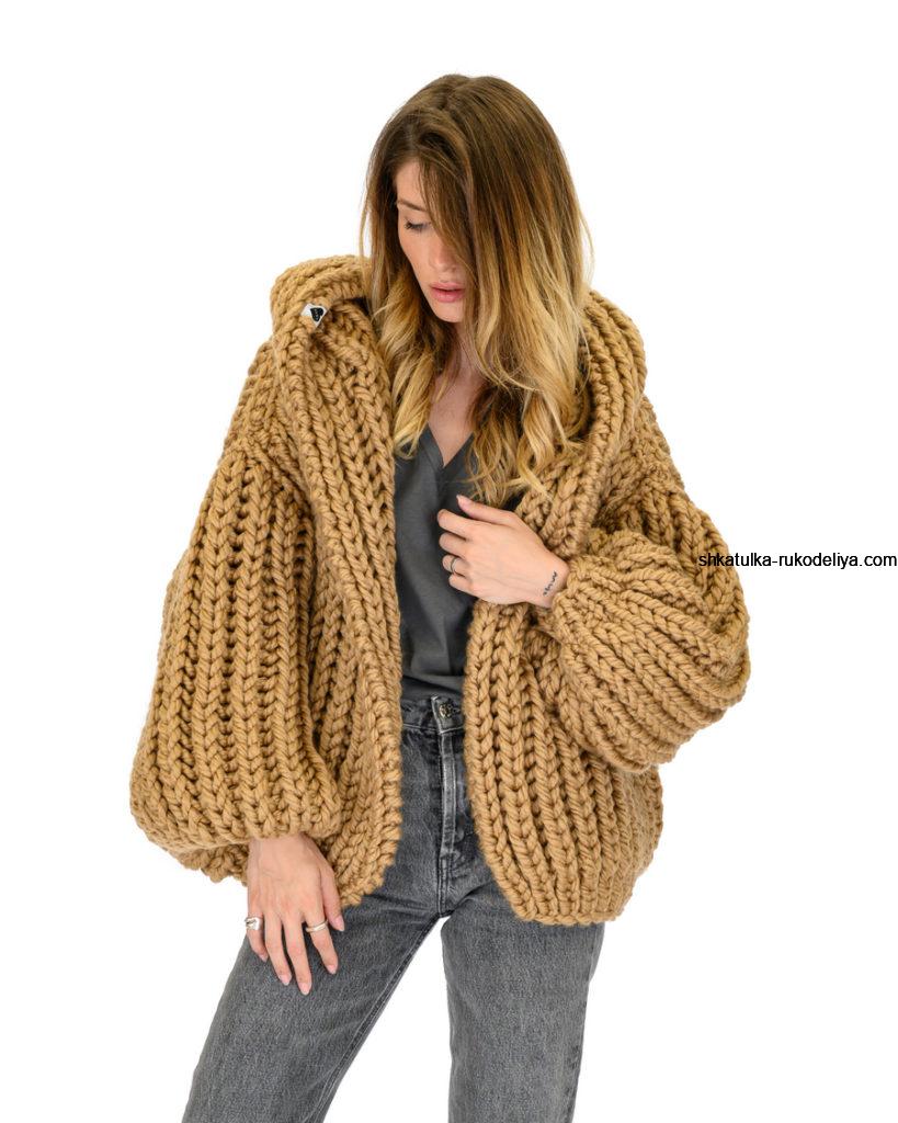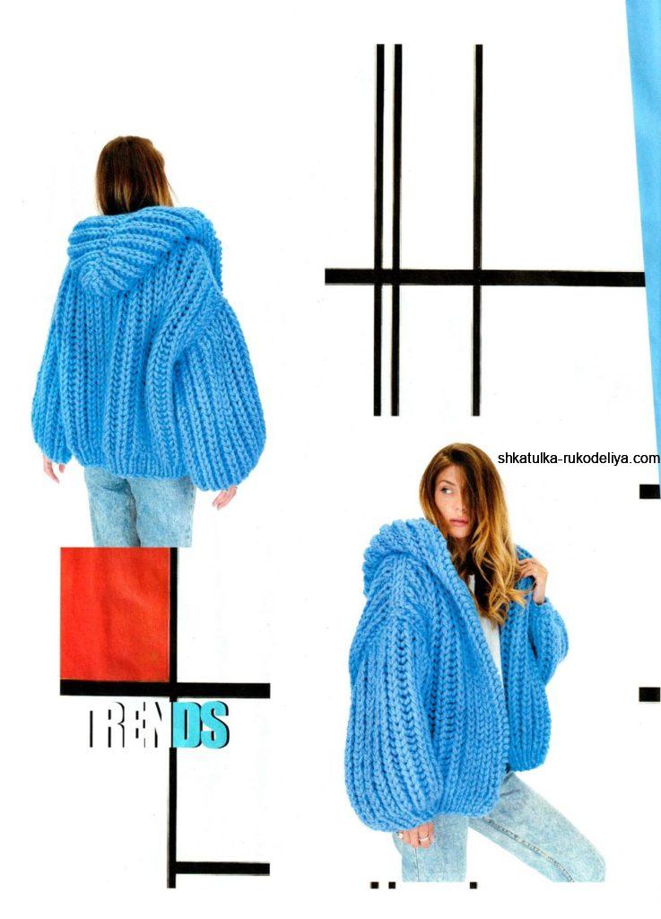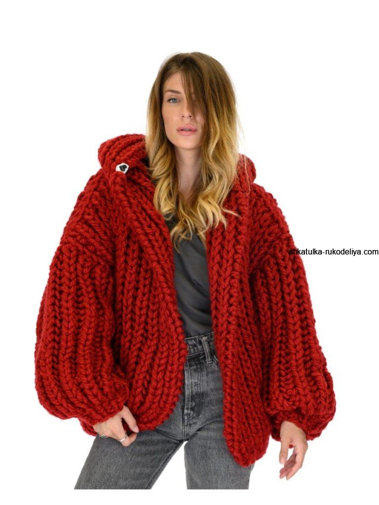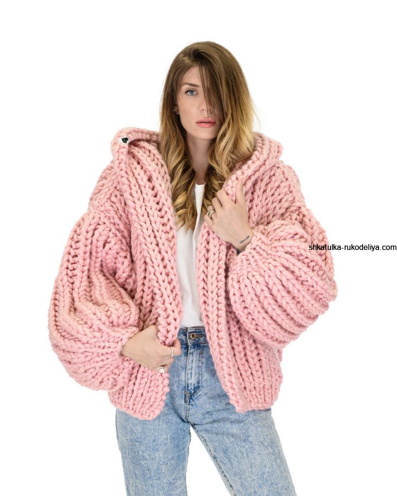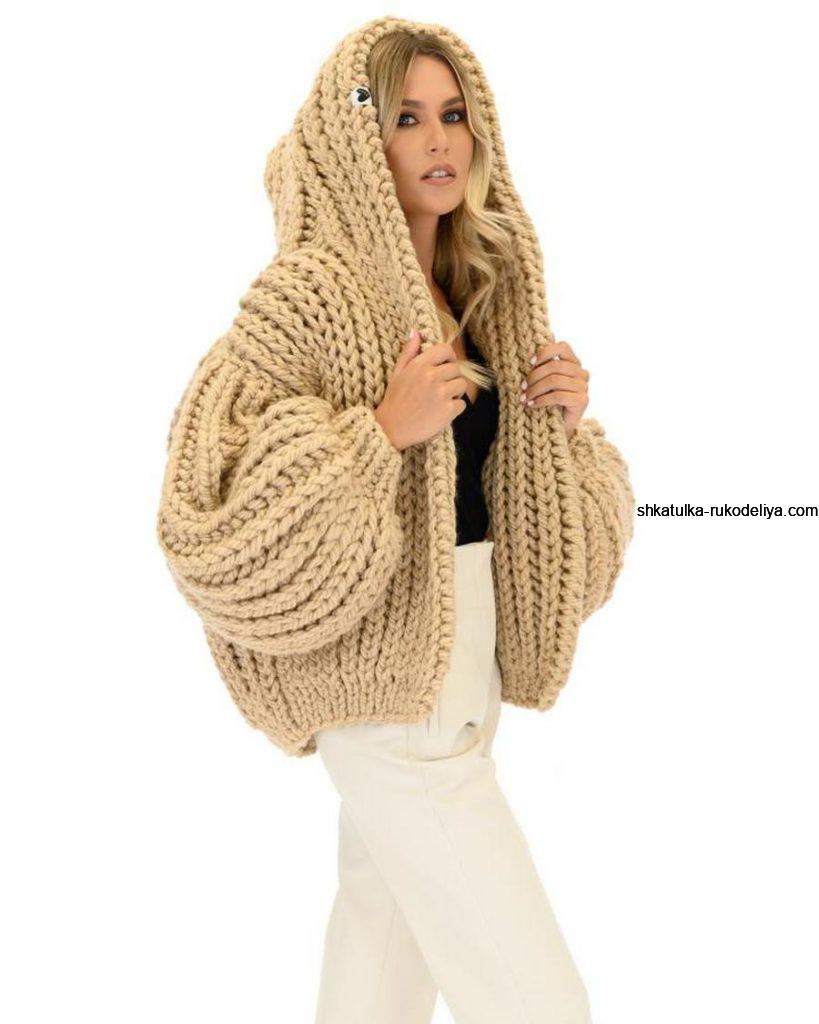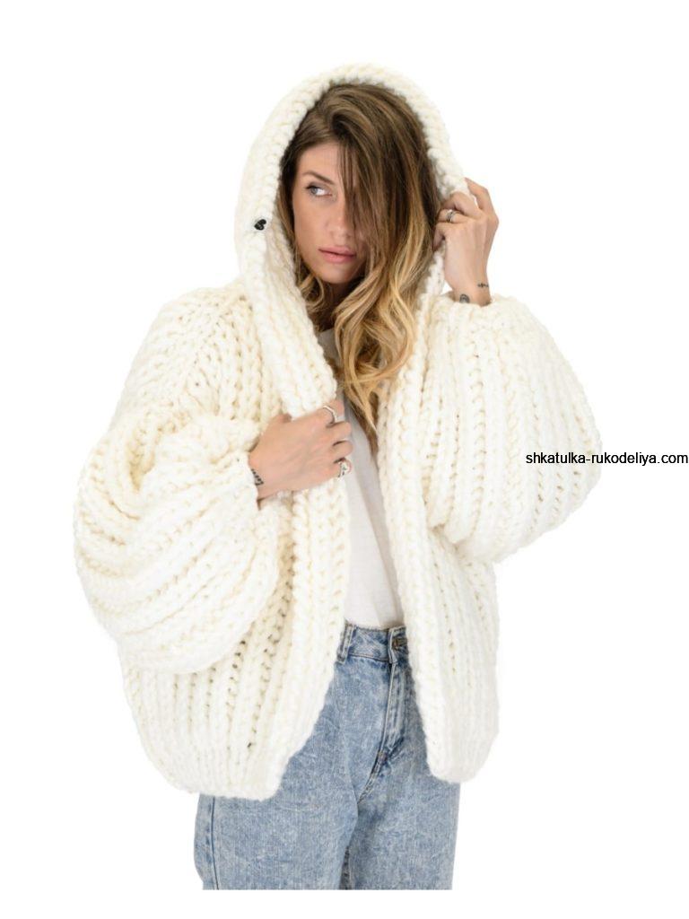 Кардиган с капюшоном спицами. Кардиган оверсайз спицами описание