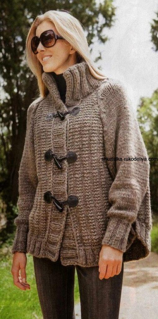 Кардиган с высоким воротником. Как связать кардиган спицами для полных