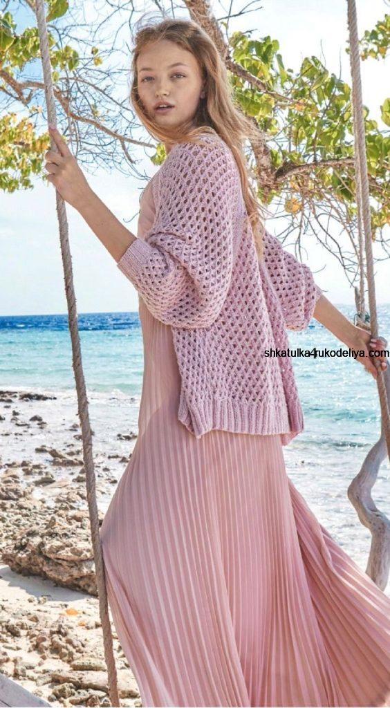 вязание спицами, кардиган, схема, описание, женский, сетчатый узор, модный, рукав реглан