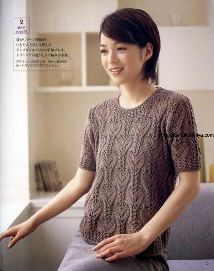 вязание спицами, кофточка, схема, вертикальный узор, японская модель, теплая, ажурная, короткий рукав, женская