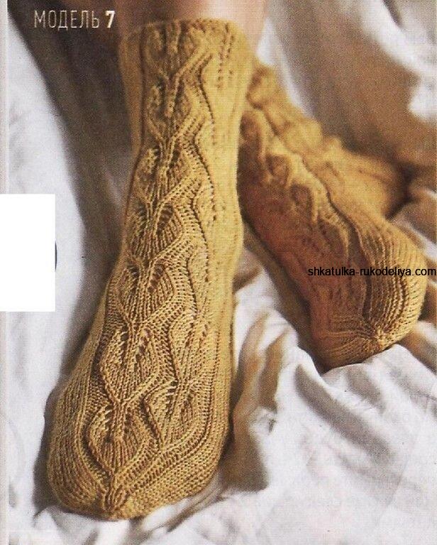 Короткие ажурные носки спицами. Простые узоры для носков спицами схемы