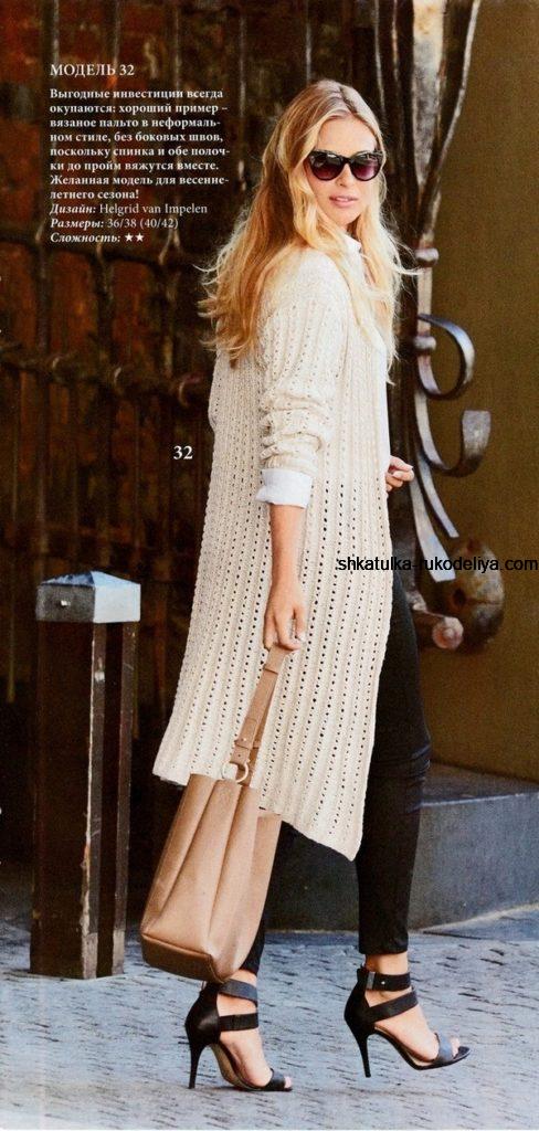 Легкое пальто без боковых швов спицами. Вязаное пальто женское спицами