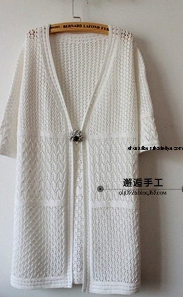 Летний кардиган спицами. Кардиган сочетанием ажурных узоров
