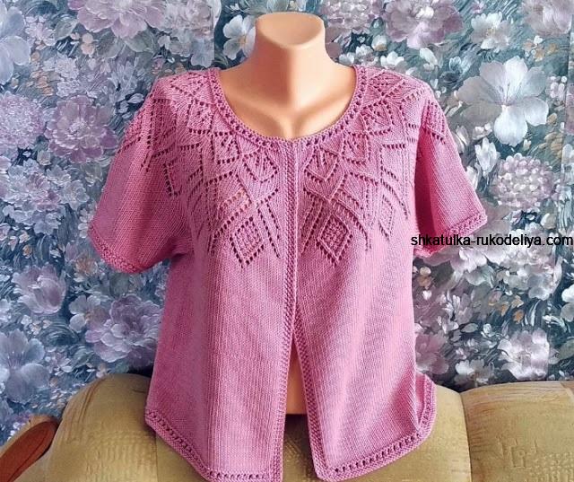 Летний жакет спицами. Женский жакет с круглой кокеткой с подробным мастер классом