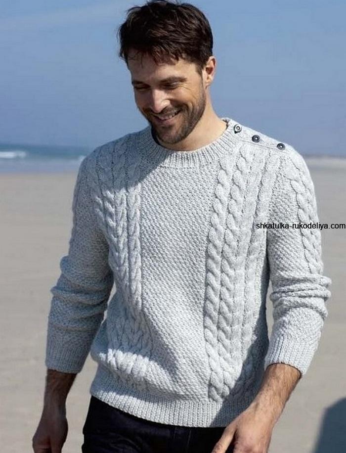 Мужской пуловер с застежкой на плече спицами. Мужские пуловеры спицами схема описание
