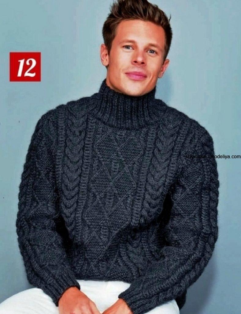 Мужской свитер с рельефным узором. Мужской свитер с пошаговый бесплатным описание