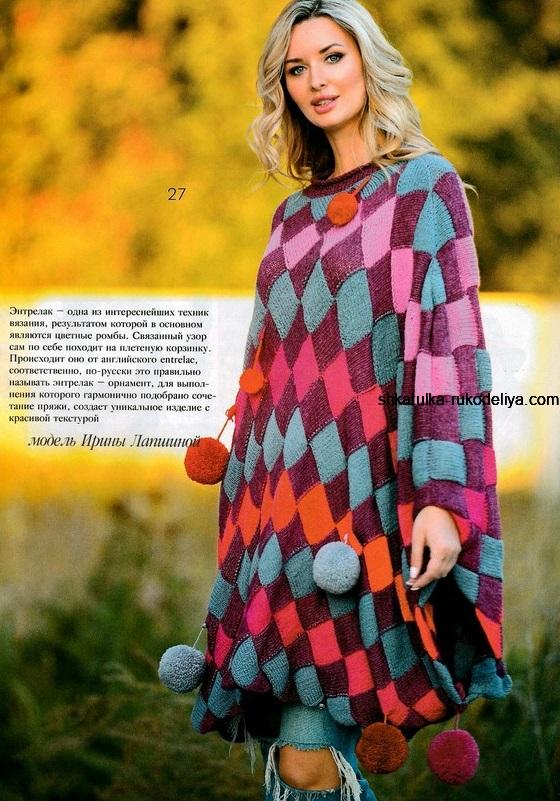 Накидка в технике энтрелак спицами. Накидка спицами для женщин