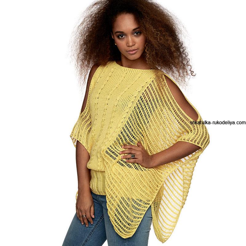 Объемный экстравагантный топ с глубокими проймами завораживает множеством интересных деталей. Эффектный летний женский топ с описанием и схемами