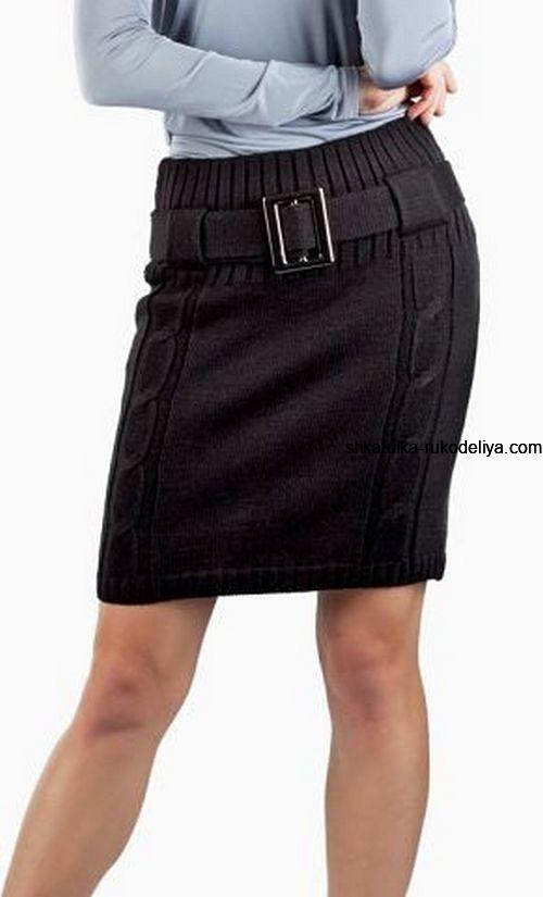 Вяжите полотнища юбки, делая убавления по бокам на приталивание согласно выкройке. По линии талии провяжите 8-10 см резинкой 2 на 2 (чередовать 2 лицевые, 2 изнаночные).