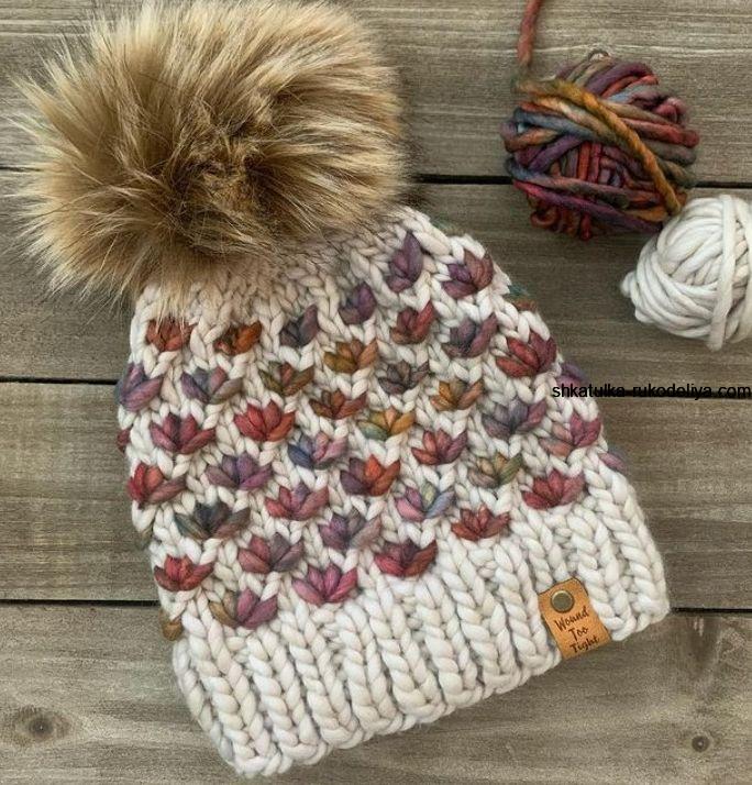 Шапка шикарным узором спицами. Шапка узором звездочки спицами бесплатная схема