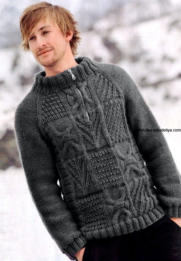Пуловер для мужчин с рельефным узором спицами. Мужской пуловер спицами с описанием